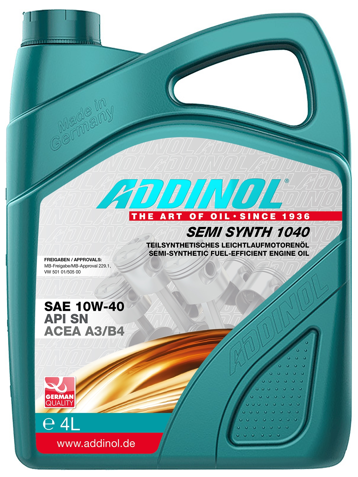 ADDINOL Semi Synth 1040 是一種節省燃料的半合成燃料 SAE級10W-40油。 高品質礦物油萃餘液和合成油的組合具有現代添加劑的基礎油確保了出色的引擎清潔度以及出色的防腐蝕和磨損保護。